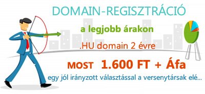 Legyen neked is saját domainneved! Használd ki a .HU domain regisztrációs akciónkat, melyben minden új .hu végződésű domain regisztrációs díja 2 évre: